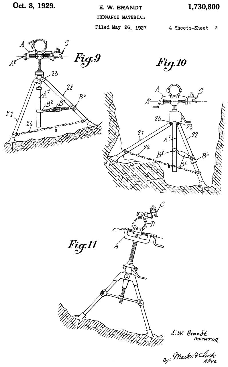 2430636 Rocket launcher, Albert S Gould, 1947-11-11, - attachment for Browning MG tripod.