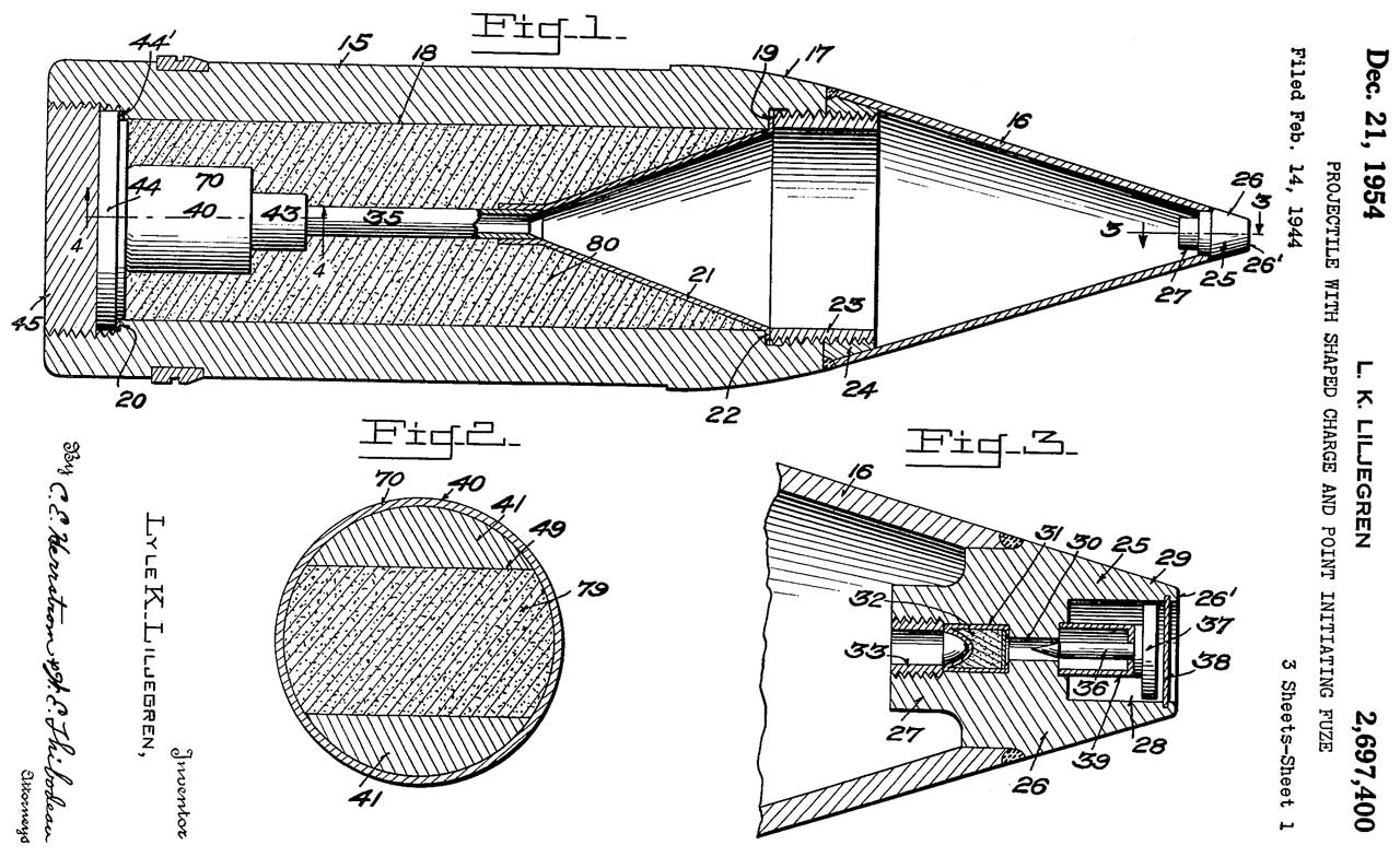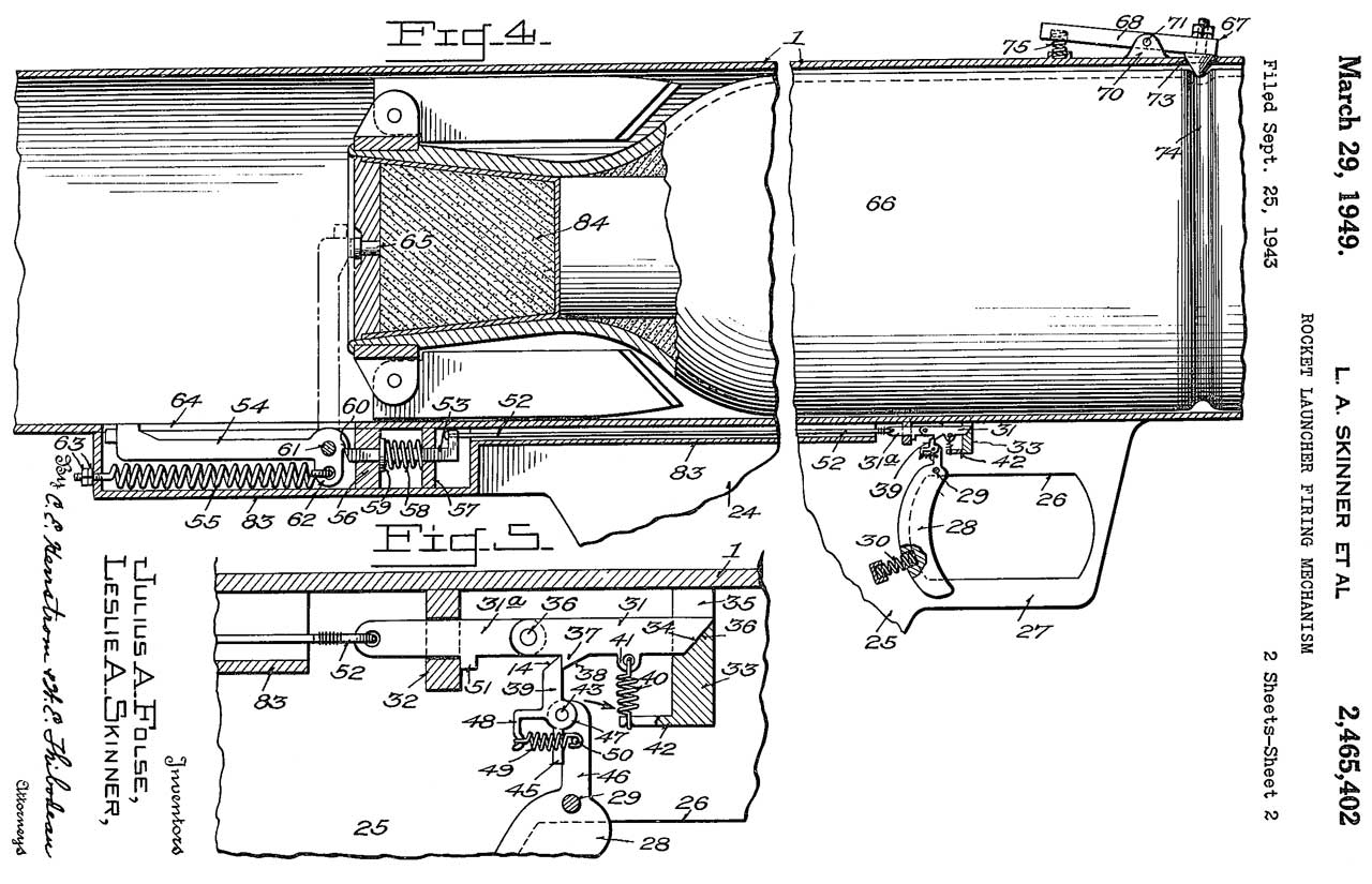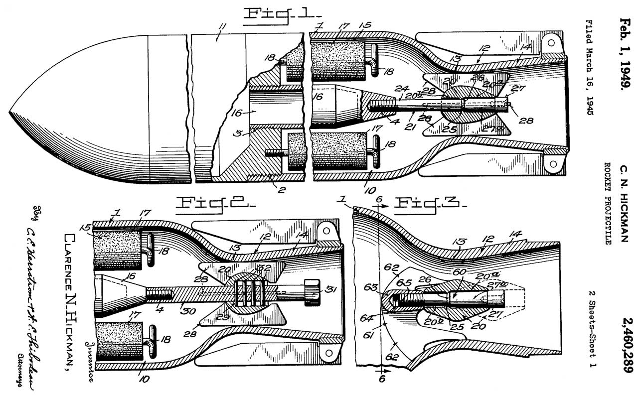 2460929 Rocket holding device, Milton R Goff, Sec of War, App: 1946-12-02, W.W. II, Pub: 1949-02-08, - Cited by 26 patents.