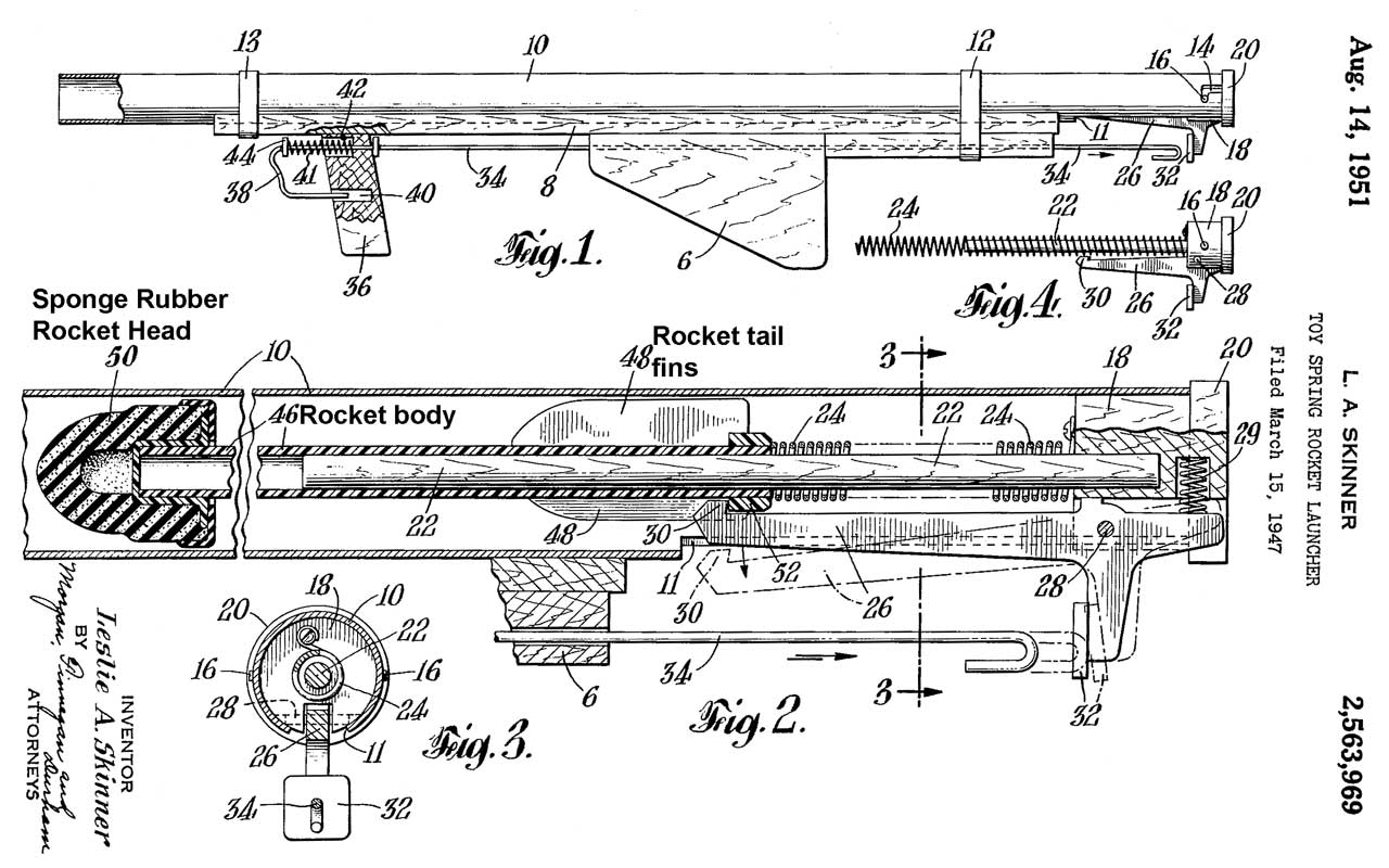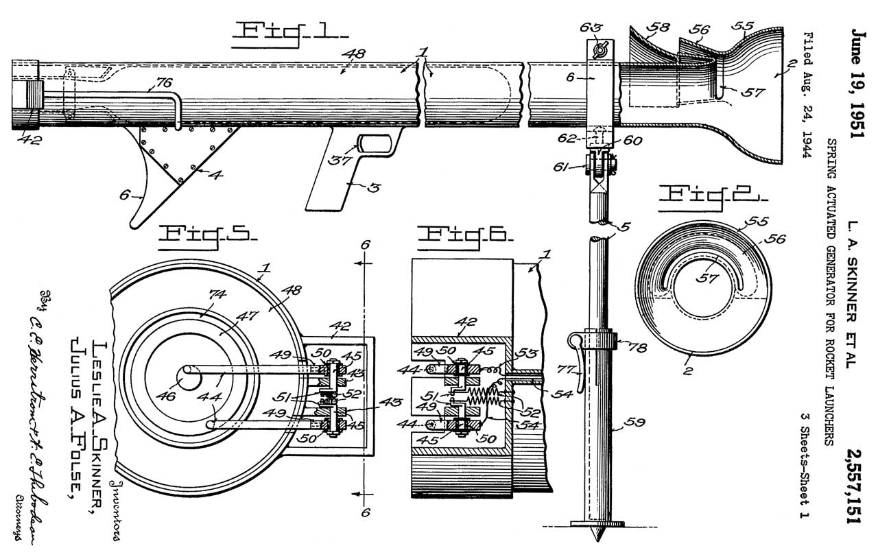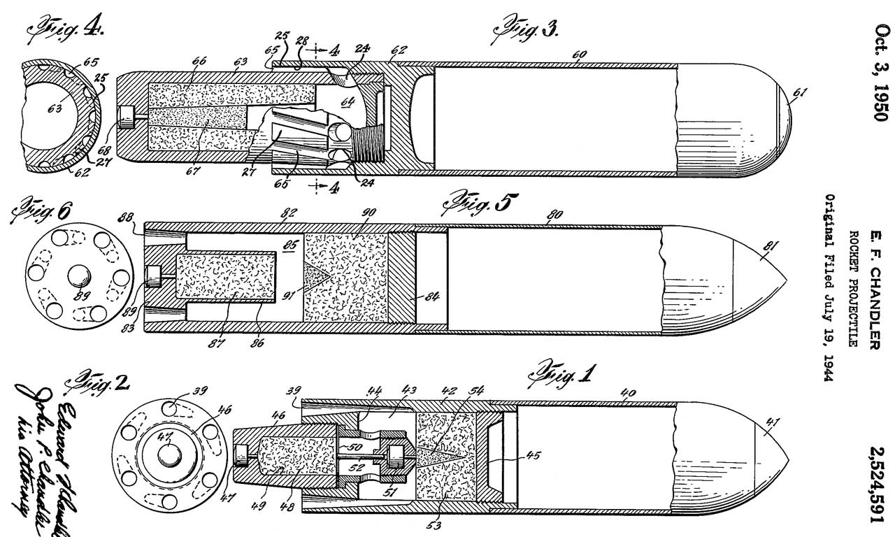 2703508 Rocket projector, Charles C Lauritsen, App: 1943-04-02, Pub: 1955-03-08, - MLRS w/dispersion Cites 32 patents,