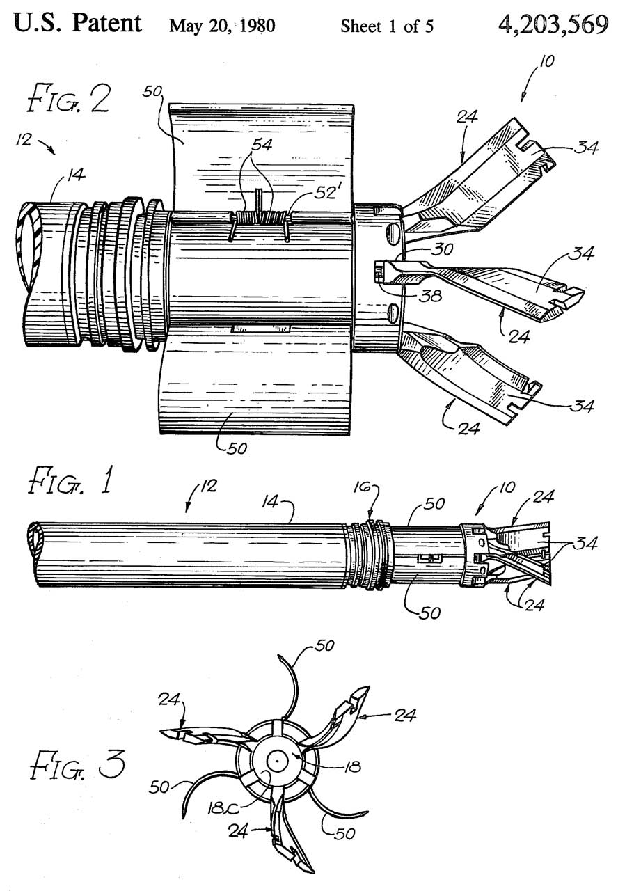 4203569 Fin and nozzle unit for a free-flight rocket, William S. Marks, BEI Electronics, 1980-05-20, - "The invention is particularly applicable to military rockets which may be launched from launching tubes on a military helicopter, other aircraft, or on the ground."