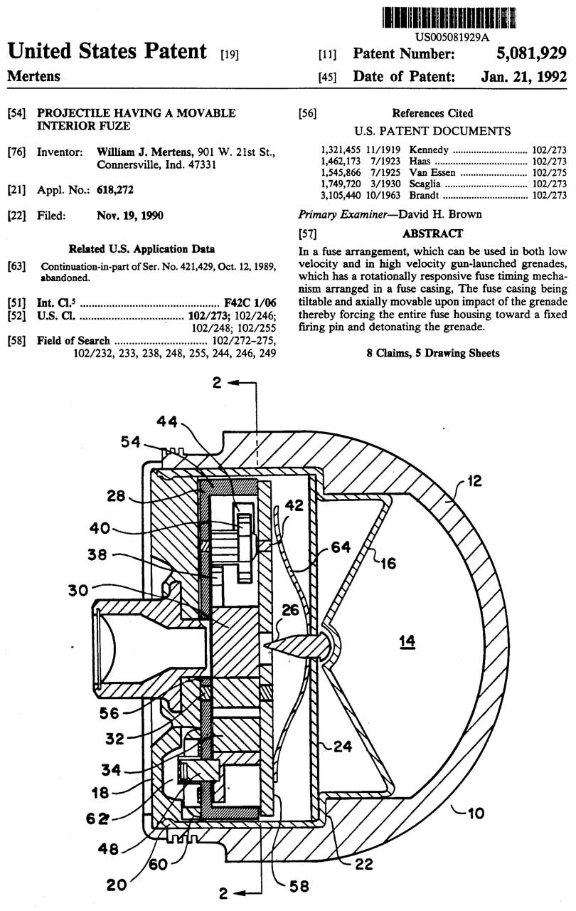 20200070977 Compact unmanned aerial system, Hao Kang, John W. Gerdes, III, 2020-03-05, - "...An unmanned aerial system capable of being launched from a grenade launcher..."Martin-Electronics Inc - Innovative low, medium & high velocity rounds including the HUNTIR video camera