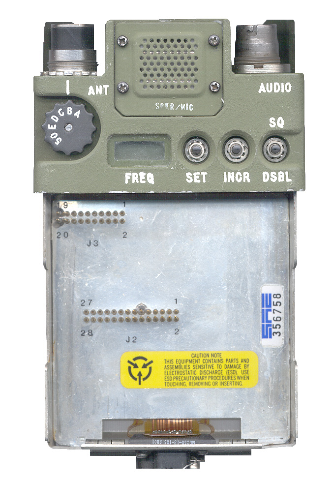 The PRC-126 shown with it's modules removed is marked "BAD FRM" but it appears to be very new and clean.