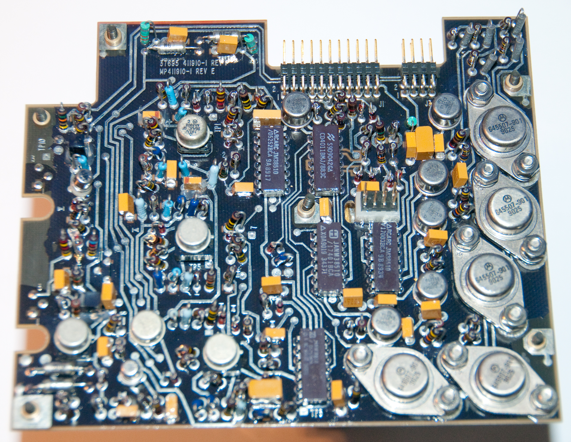 After removing the finned assembly which contains the DC input filter and RF power amp, the resistance between J3-B (+24VDC) and either J3-A (chassis) or J3-C (-24VDC) shows as OL (Over Load) so the problem is not in the finned assembly.