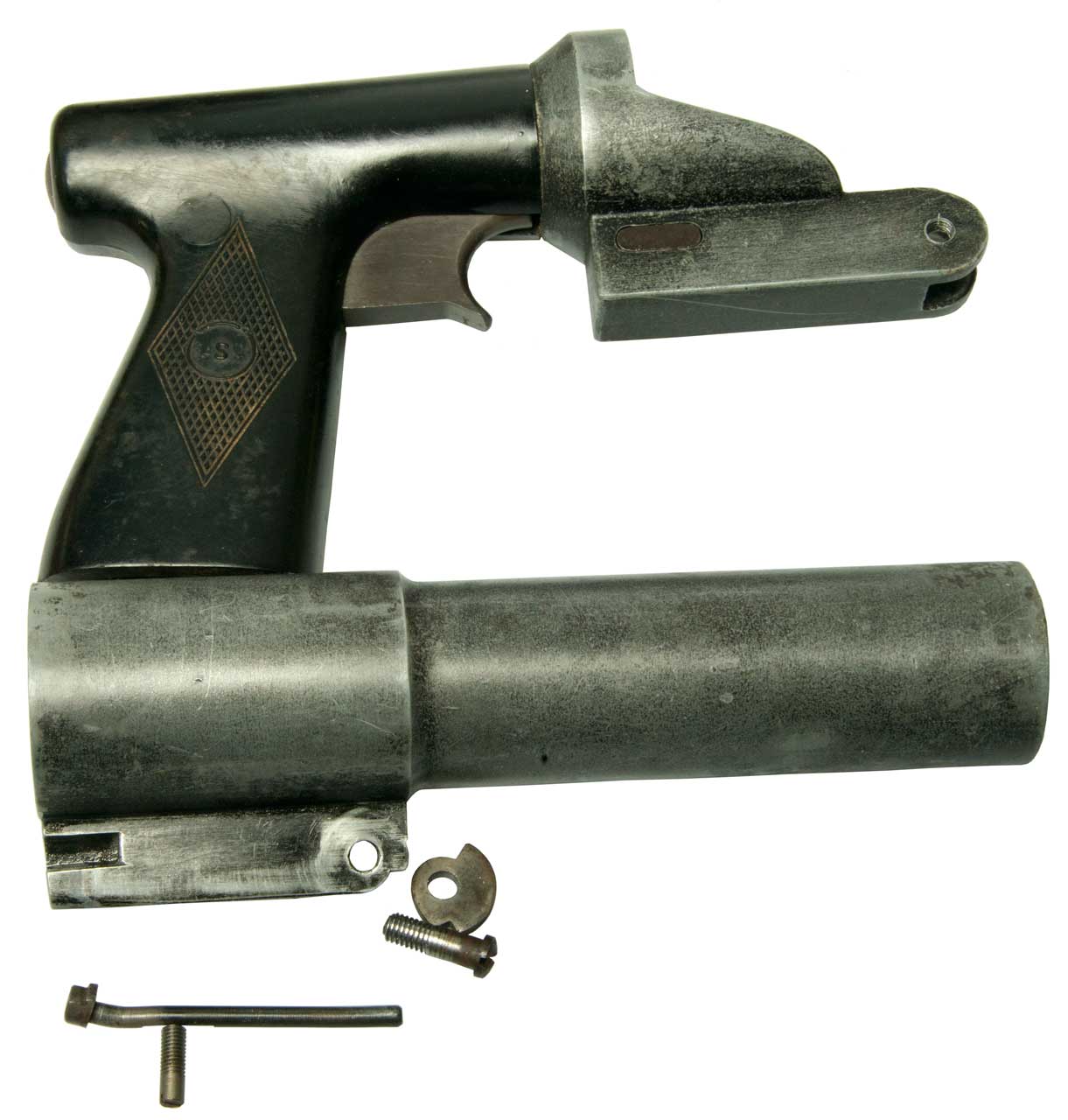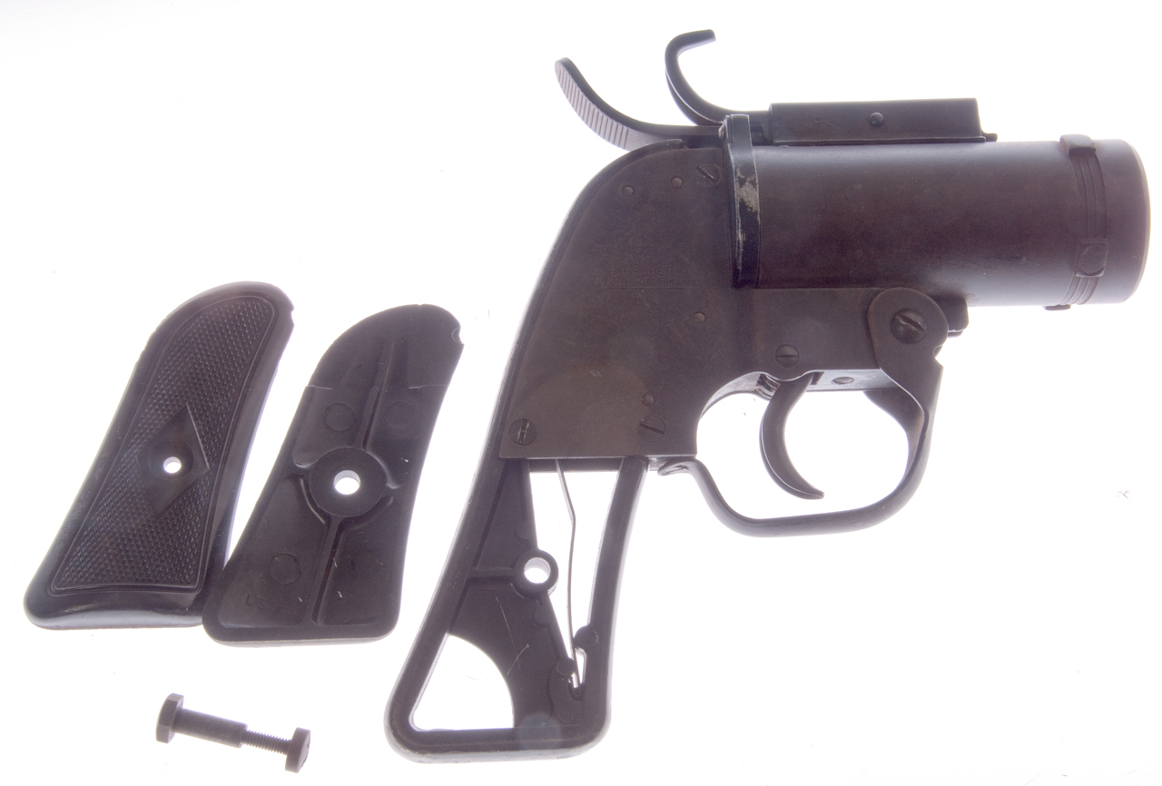 26.5mm flare pistol. Copied from Russian SPSh-44 except its external safety and different design on the grips.