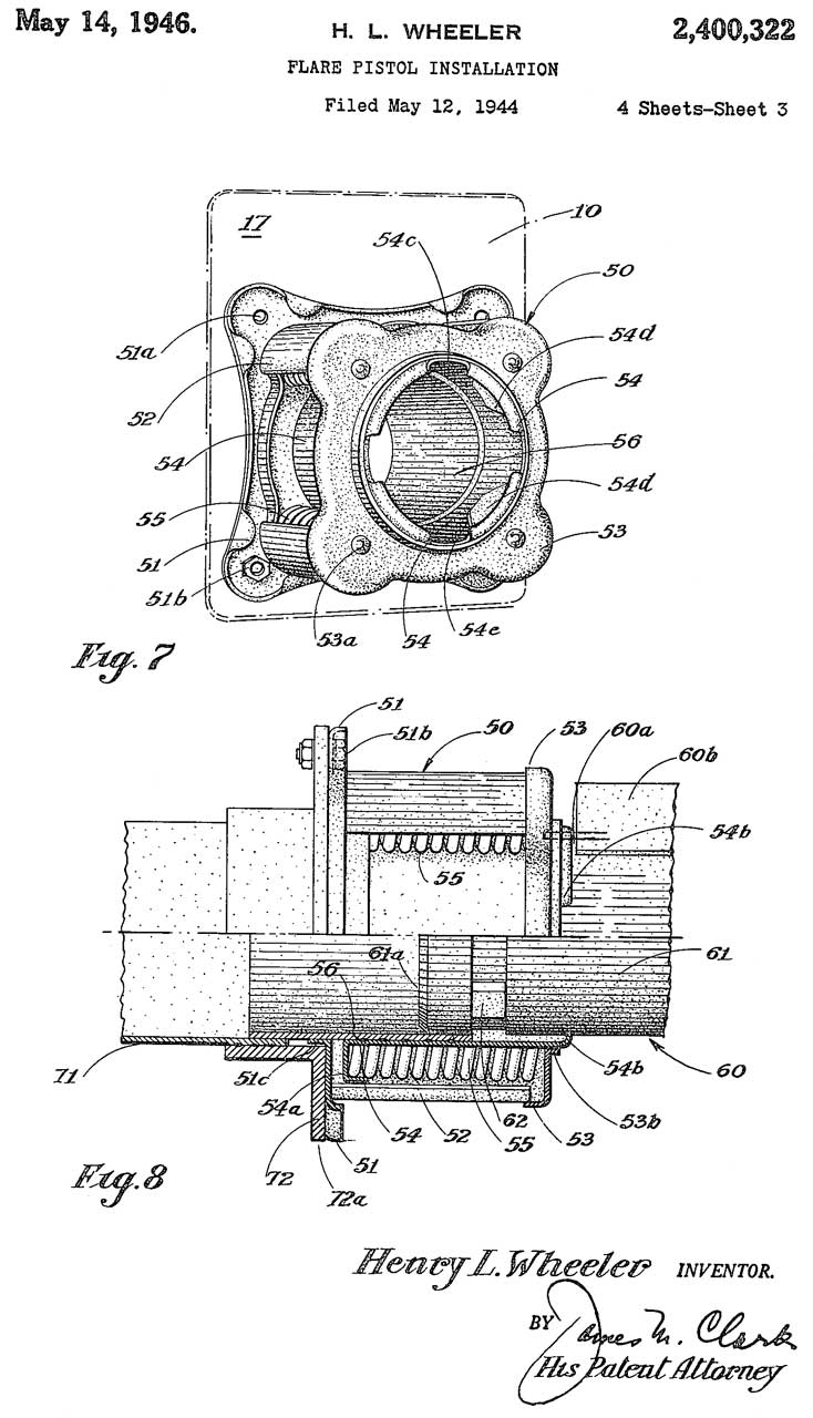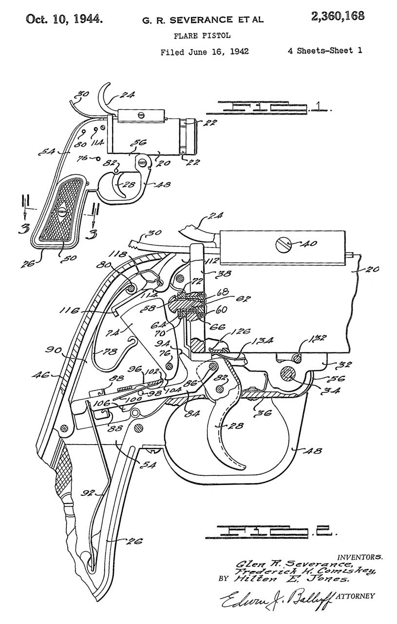 A cast metal Flare Launcher showed up on eBay with a patent number, which after trying many combinations, turned out to be 3168788.