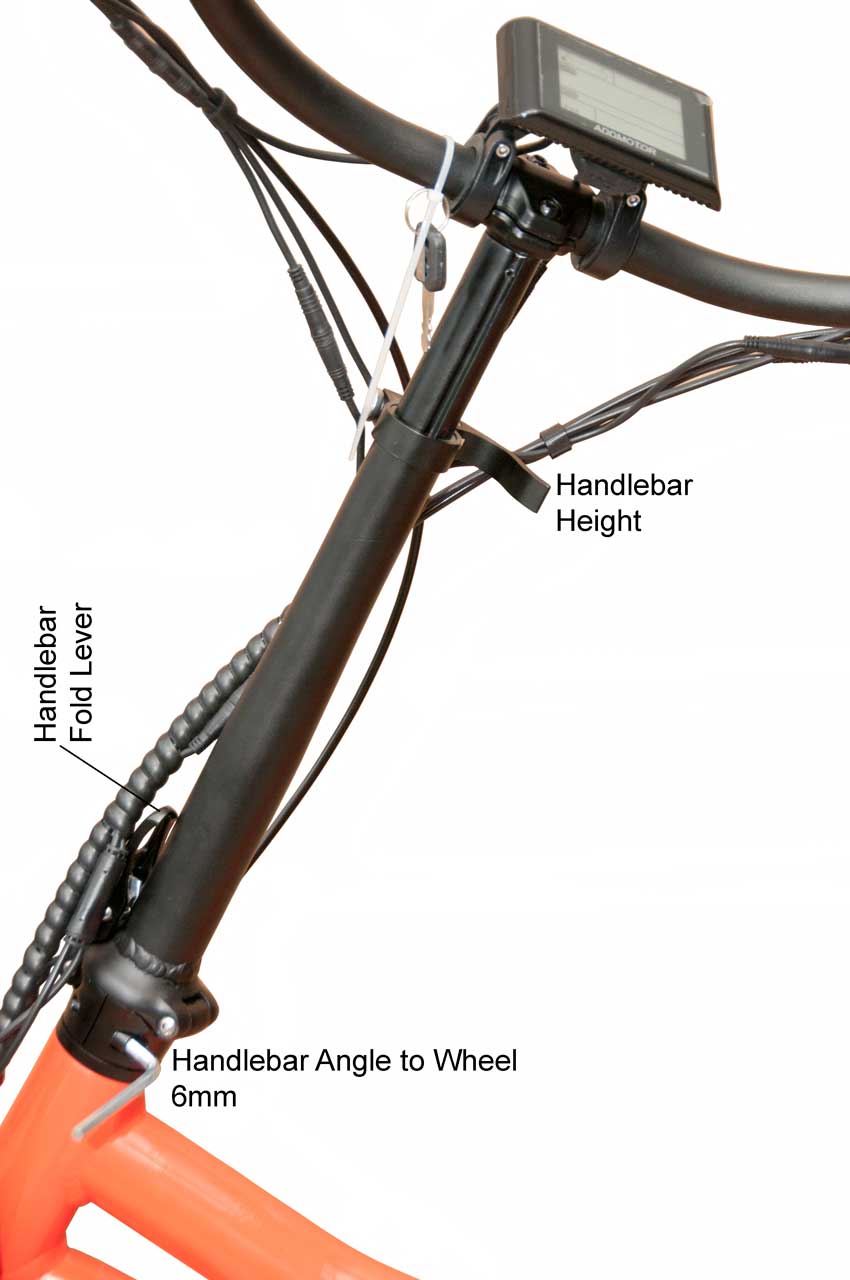 - The pinch screw that locks the alignment setting for the front wheel relative to the handlebars is not strong enough. See: Handlebar: Folding & Adjusting