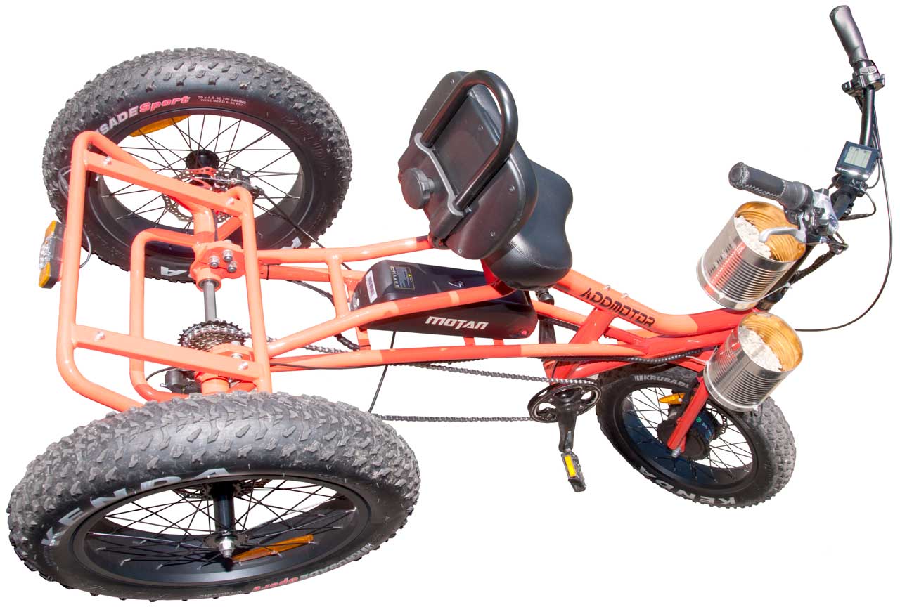 Intro YouTube: Addmotor MOTAN M-360 Electric Trike Beach Cruiser - note the seat post is horizontal, unlike the vertical arrangement on the M-330 and M-350.M-350