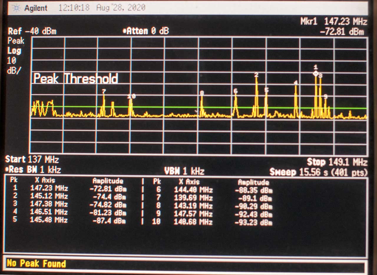 My house gets over flown often. So I now have 116 to 173 Mhz on a single sweep. Peak Hold, 10 kHz RBW.