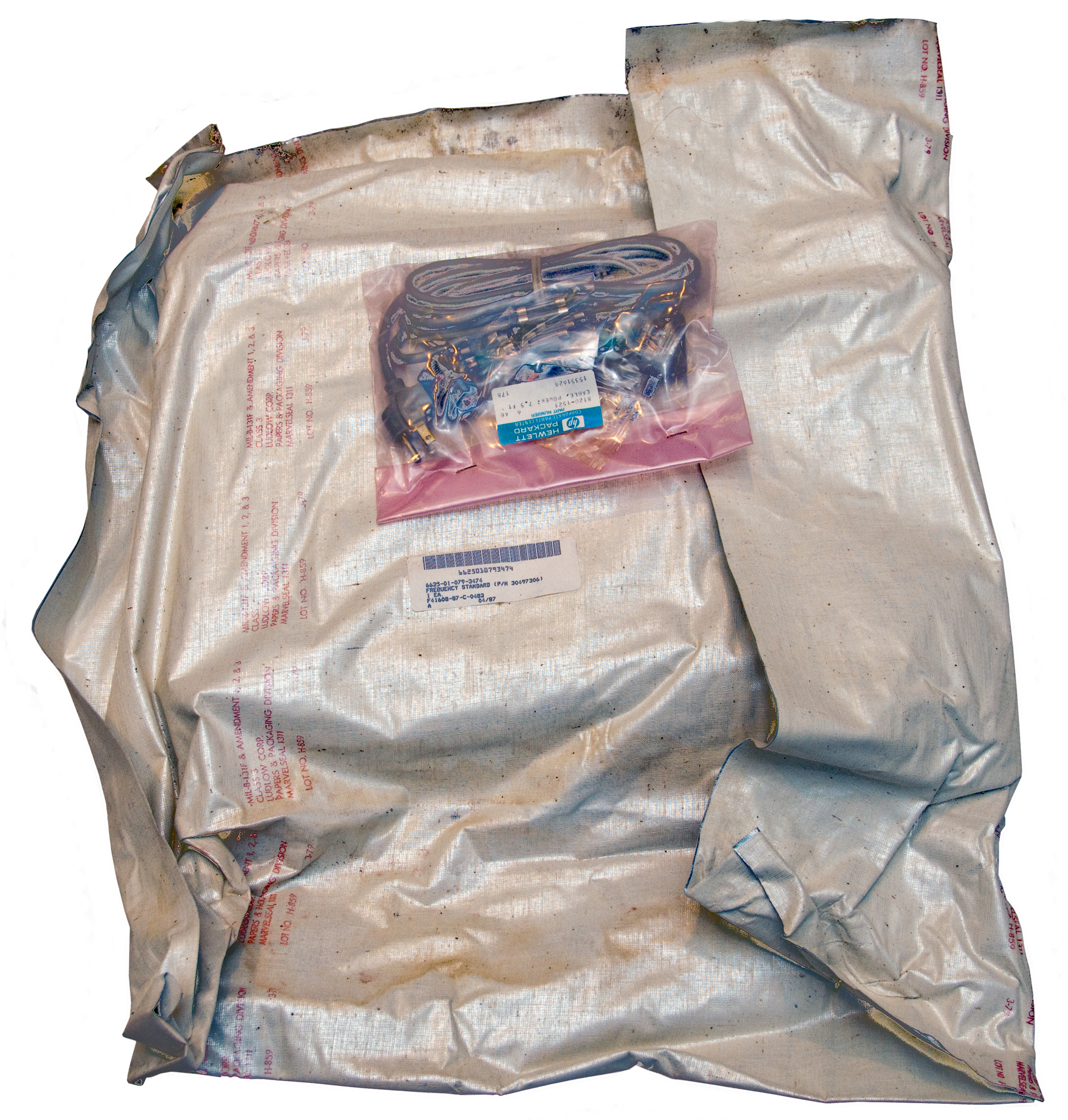 This 1250A came New In the Box (NIB), but after seeing the very poor condition of the box I thought I might be getting a "project", but it turns out that this was a government contract unit in full mil specification packaging that included foam in place packaging. Inside that there was the multiple layer metalized and hermetically sealed bag with desiccant (Wiki) bag. In addition there was plastic bag marked Hewlett Packard with the line cord, fuses, auxiliary DC power connector, &Etc (Why the HP brand name?). Inside that there was a plastic bag surrounding the 1250A and the manual.