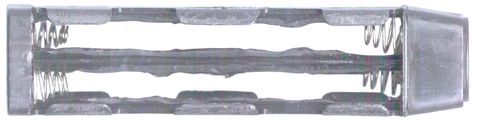 Two slots have been Moto tooled to allow the batteries to touch each other and the "ears" have been slightly thinned. This modified adapter measures <1.4" O.D., but it has not been tested in an application.