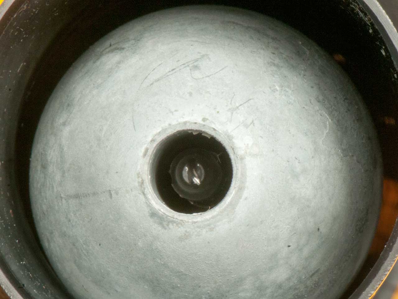 Note there is a hole on the opposite side of the Bathythermograph to allow a wooden dowel to be used to push out the scribed glass slide.Fig 3