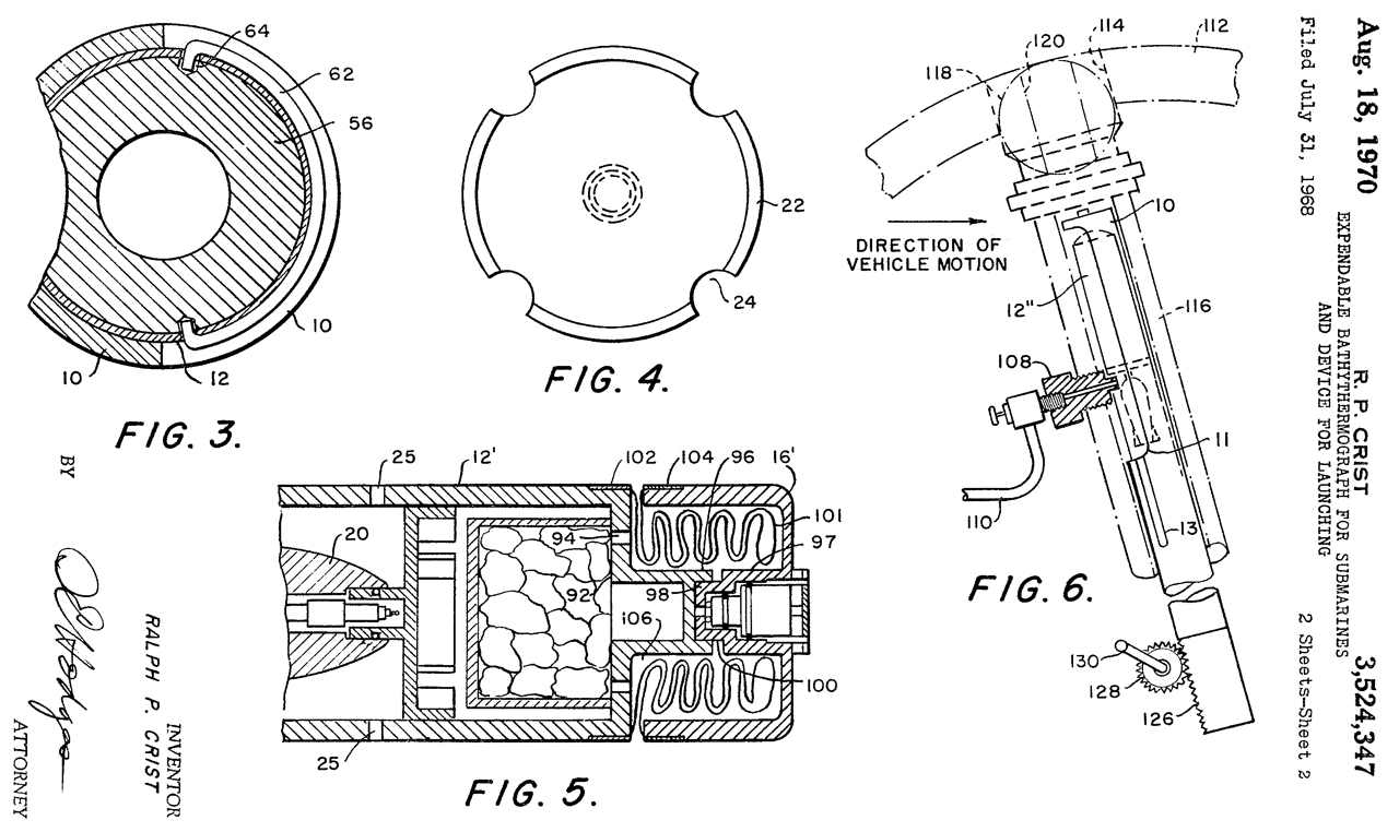 3524347 Expendable bathythermograph for submarines and device for launching, Ralph P Crist, Navy, 1970-08-18