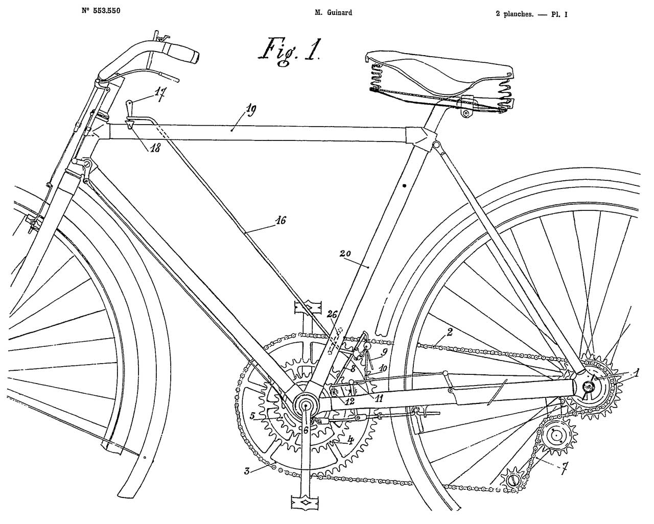 FR553550 Dérailleur de chaîne pour changement de vitesses de bicyclettes, Jules-Edmond Guinard, 1923-05-25, -