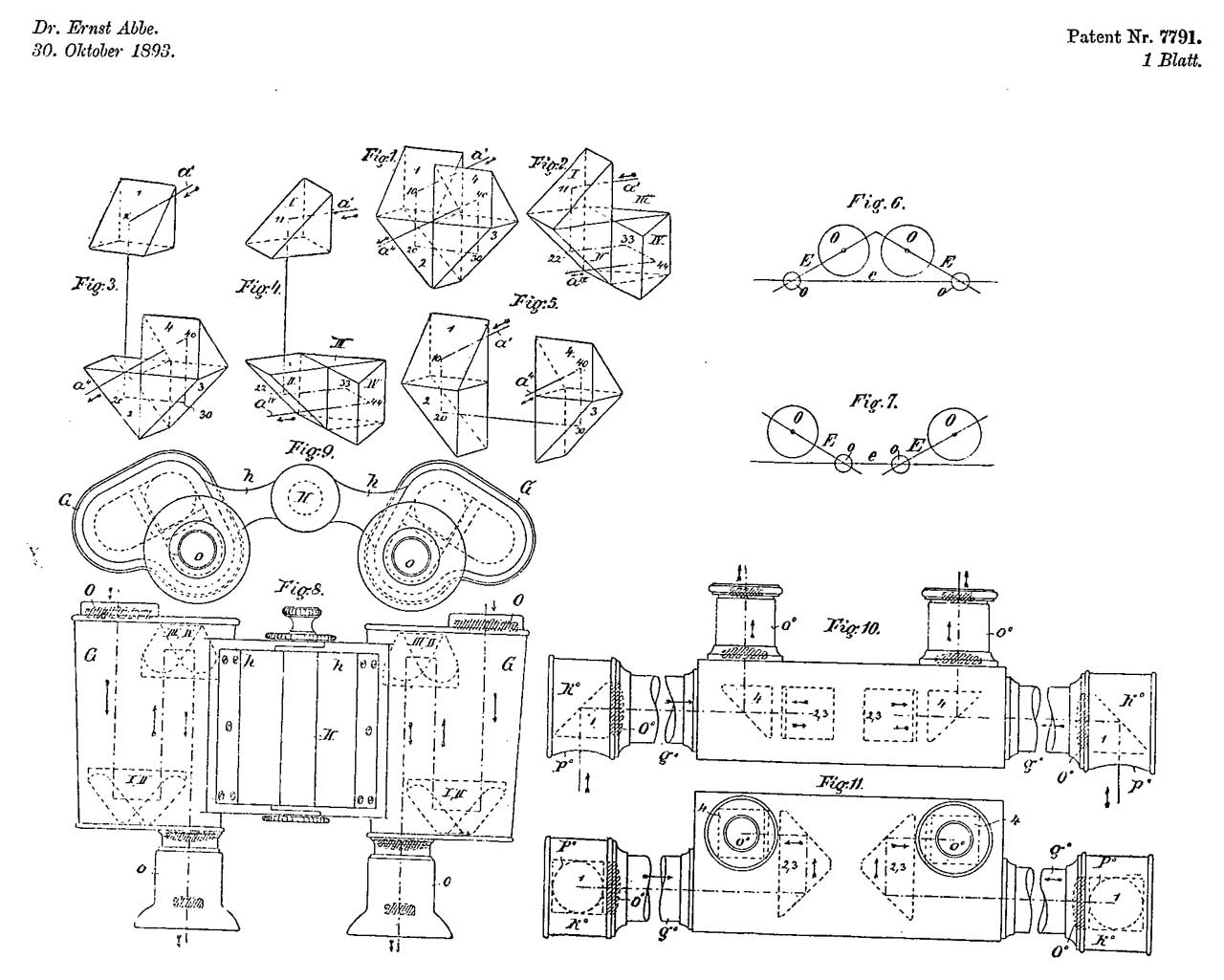 CH7791 (eSpaceNet) Double telescope with increased distance between the objectives, Abbe Dr Ernst, App: 1893-10-30, Pub: 1894-06-30, Exp: 1908- prism binoculars