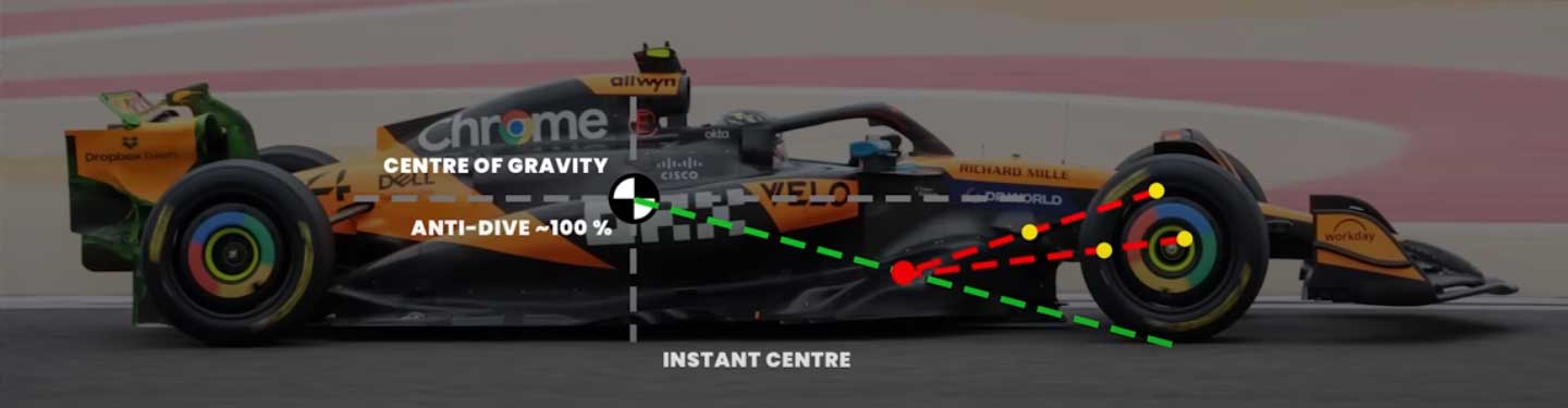 2025 July 1: YouTube: , 10:36 - @4:00 Geometry of anti-dive and %. When set to 100% there's no spring movement on braking AND the airfoil has a constant relationship to the ground.
