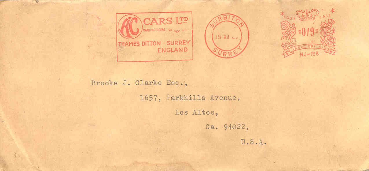 YouTube: Top Gear 1994: The AC Cobra Story + 2 other clips compilation, 32:12, - from 8:11 till there's other cars, 14:09 Back to Cobras. 16:58 1954 AC Ace by John Tojeiro (Wiki), 18:08 Fiberglass Invalid Carriages, 18:30 Shelby 260 then 289, 26:05 427 , 27:25 GT350,
