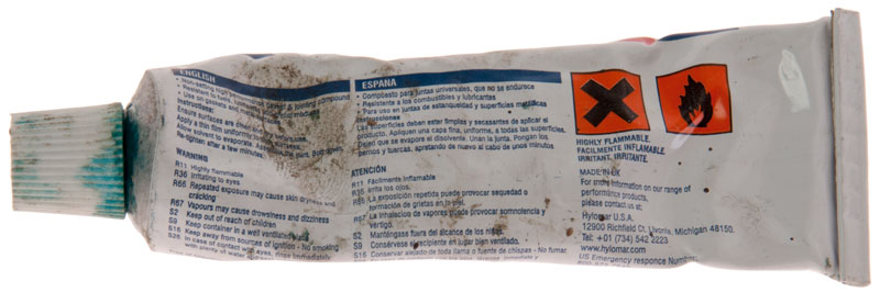 I'm putting this article about Hylomar on the CSX3282 web page since it's a British car and Hylomar came from there. The story I heard was that Rolls Royce invented this sealant to fix a differential expansion problem (maybe steel against aluminum or some such) and so needed a sealant that would not harden, like Permatex® Form-A-Gasket®. The solution was a type of non hardening plastic that will seal high pressure hydraulics. It was sold in the U.S. for racing applications where you can open the joint, even spilling oil on the Hylomar, make a repair or swap gears, and then reassemble the joint.