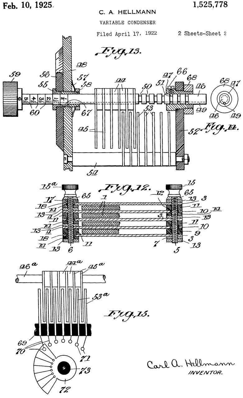 1525778 Variable condenser, Carl A Hellmann, 1925-02-10, -