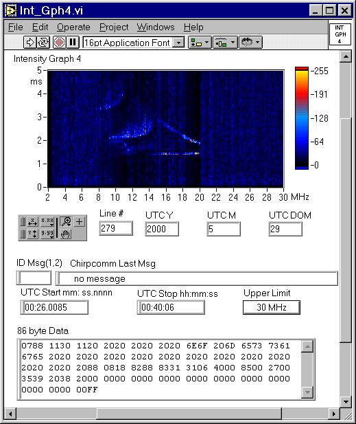 Note that some digital modulation schemes that sound to your ear like warbling tones cause a couple of dozen bogus chirp time stamps. Also noise hits sometimes cause hits. Some sounders are polite and skip time frequencies like 2.5, 5, 8.3, 10, 13.3, 15, 18, 20 MHz. So if you listen on a time station you may miss a number of sounders. Voice does not typically cause time stamps to occur so you can listen on a station with voice, but the receiver may be desensed.