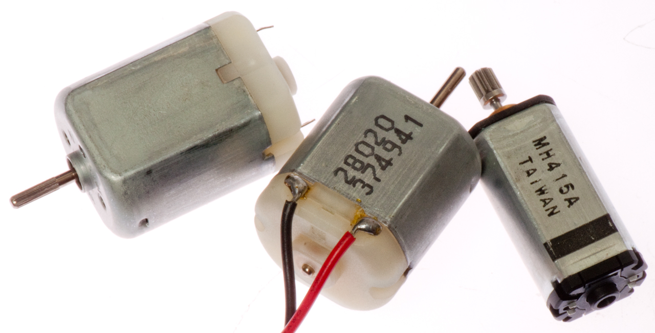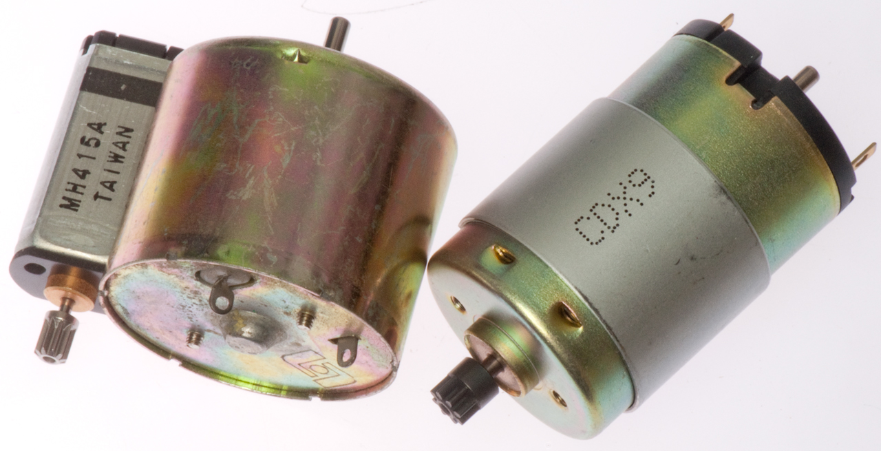 June 2015 - I'm interested in the DC PM motors with a 3.17mm (1/8") shaft because they are reasonably priced ($3 to $11) and are commonly used in RC vehicles that are about 1 foot in size. The shaft diameter of a motor is related to it's power output, for 1/8" shafts that amounts to about 50 to 200 Watts (746 Watts is 1 horsepower).