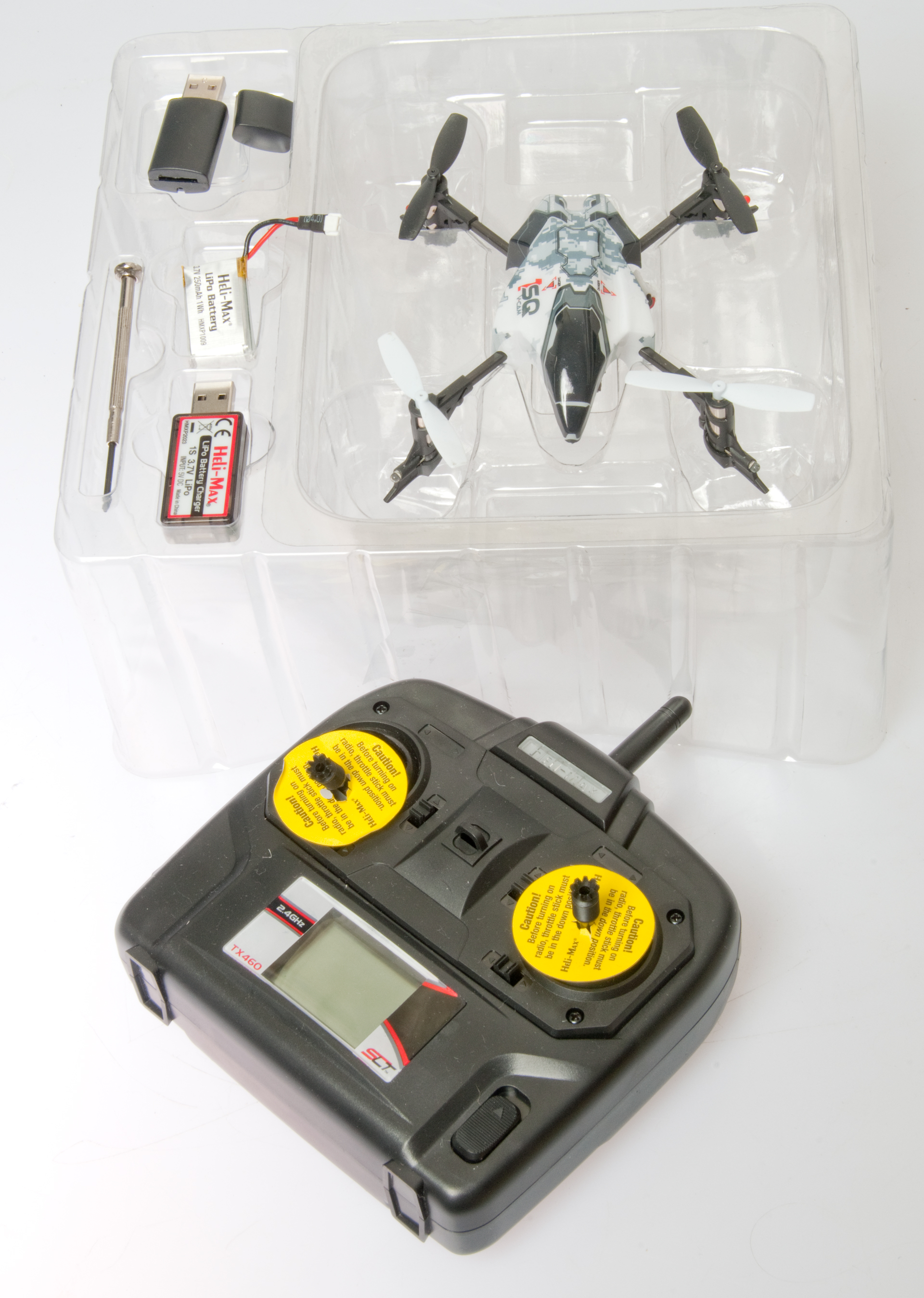 This is a complete Ready To Fly (RTF) quad copter. It's very small and light and about $130 for the set.