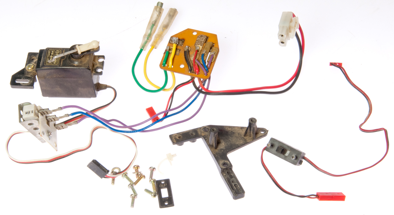These are two very old RC vehicles. They both use a number of common parts. I think they were sold without the RC transmitter, receiver and servos since they have different brands for these items. Electronic Speed Controls (ESC) were not available then so a Mechanical Speed Control (MSC) based on a servo was used to move a switch along with a power resistor. There are three speeds: stop, medium and full.