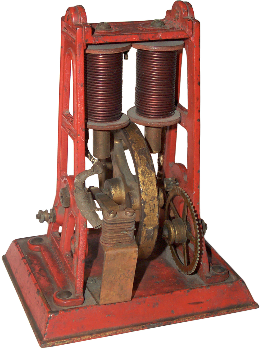 This is a photo from eBay of what appears to be the little brother to the above Toy Engine. The coils appear to be shorter and use smaller wire then the above Toy Engine, but it's hard to tell.  This little brother engine was shown running from a 6 volt battery.