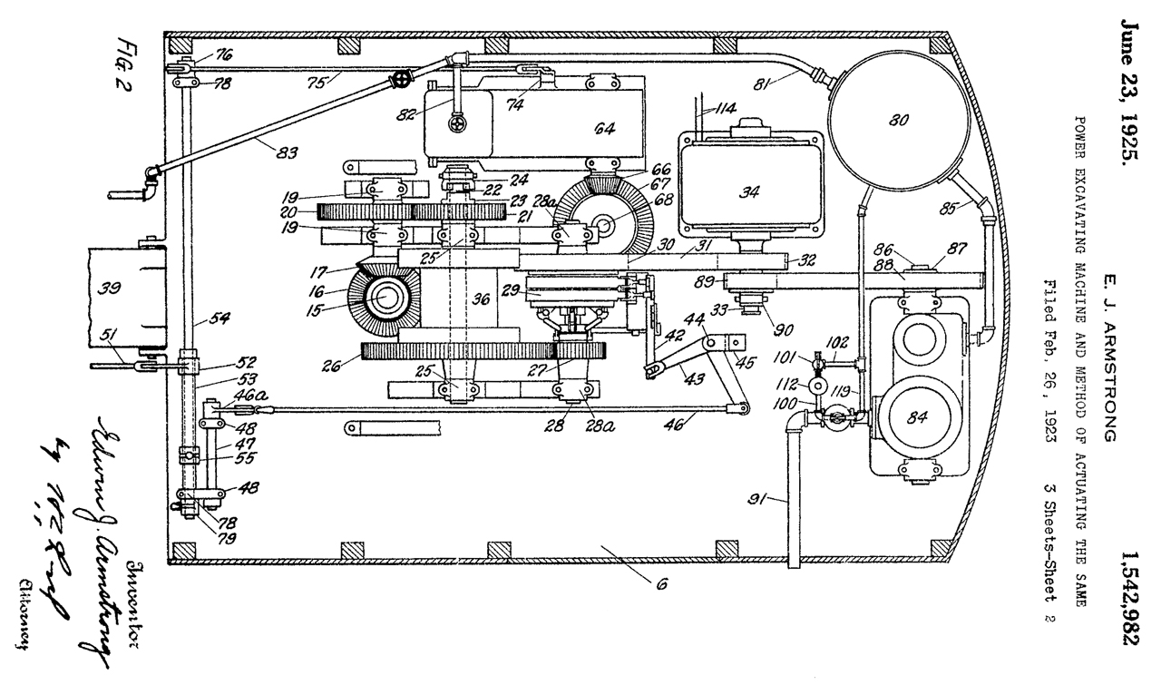 | 1542982 Power Excavating Machine and Method of Actuating same, Edwin J. Armstrong (Erie Steam Shovel Co.), Jun 23, 1925 | ||