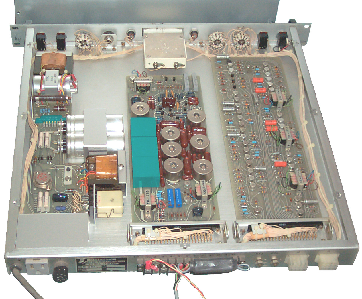 It has an attached 3 wire line cord and wires for the 600 Ohm balanced audio input from a receiver and a jack for a current loop connection to a RTTY (RAT) machine.