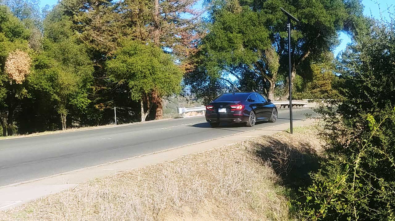 Note in Fig 4 above the solar panel is pointing South (as in all Flock camera installations in the Northern Hemisphere) and in this case the camera is pointing in the opposite direction, North. This is an ideal configuration. I tried to use a game camera (Wiki), a functional equivalent to the Flock camera, where the camera was pointing South. That caused a problem since at some times the camera would be looking into the Sun. This configuration issue may be why the Flock camera near Perkins St and 101 was removed a week or so ago (end of 2022 Oct) and reappeared today 2022 Nov 6. The camera is pointed to the East and may have been looking directly at the rising Sun. Near Winter Solstice (Wiki) the Sun is low in the sky. This may be a general problem for Flock camera installation and so they need to take the Sun's position into account.