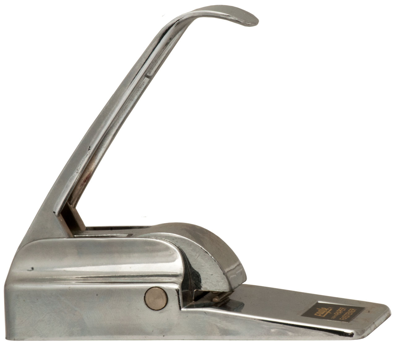 (Wiki) a brass mushroom with two brass sheet metal tails. (Staples Acco 71504)