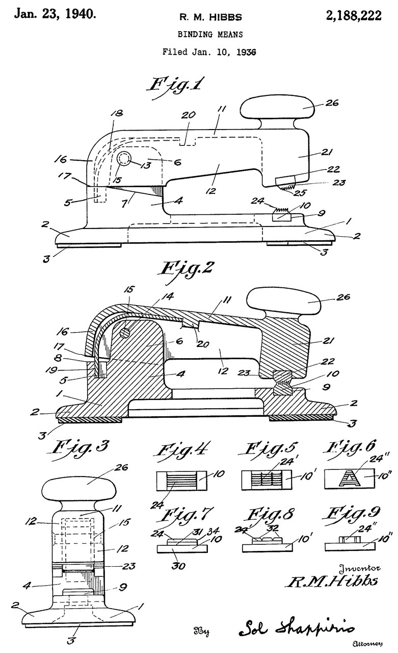 56587 Paner Fastener, G.W. McGill, July 24, 1866, 411/457 - made all from sheet metal (no round metal head, but the same functionality as the modern version.
