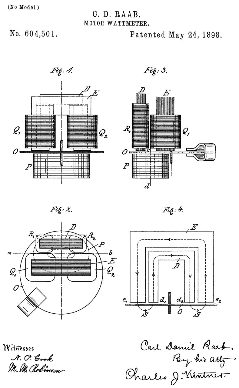 604501, Motor Wattmeter, Carl Daniel Raab (Germany), May 24 1898, 324/137 - spinning disk