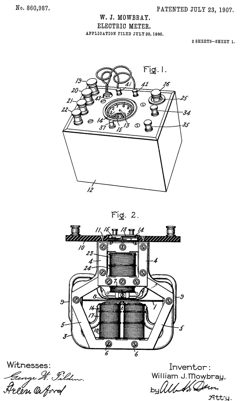 860987, William J Mowbray, Gen Electric, July 23, 1907, 324/116; 324/137; 324/149 -