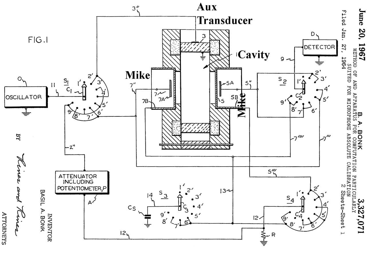 3327071 Method of and apparatus for computation particularly suited for microphone absolute calibration, Basil A Bonk, General Radio Co, 1967-06-20, - |
