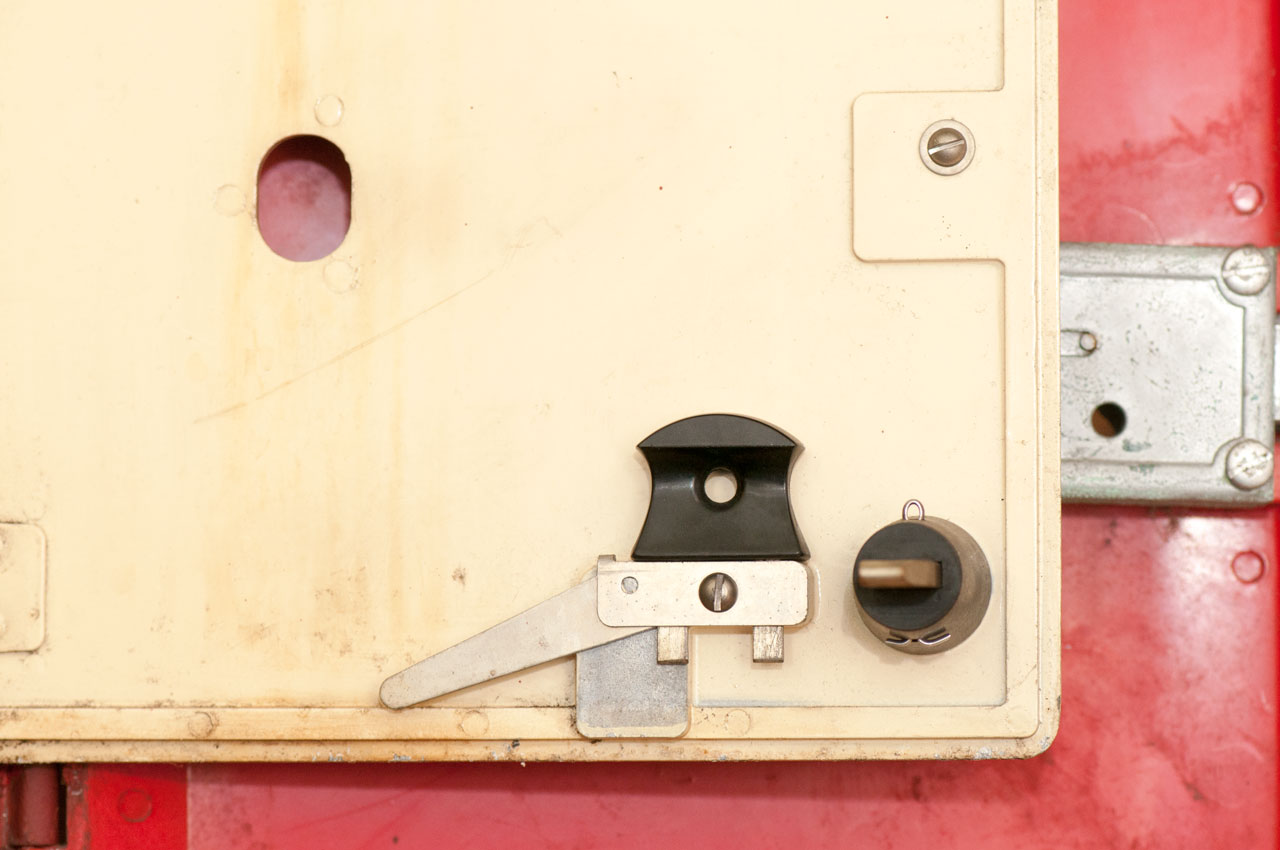 Note when the plug is removed lever hinges down preventing inner door from closing.