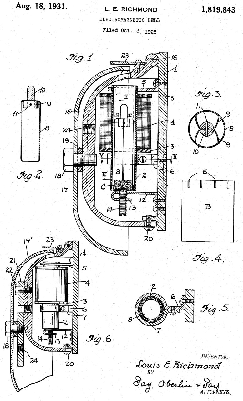 534908 Electric Signaling Apparatus, B.J. Noyes, Feb 26, 1895, 340/294 -claim is the addition of a bell, mot the register itself.