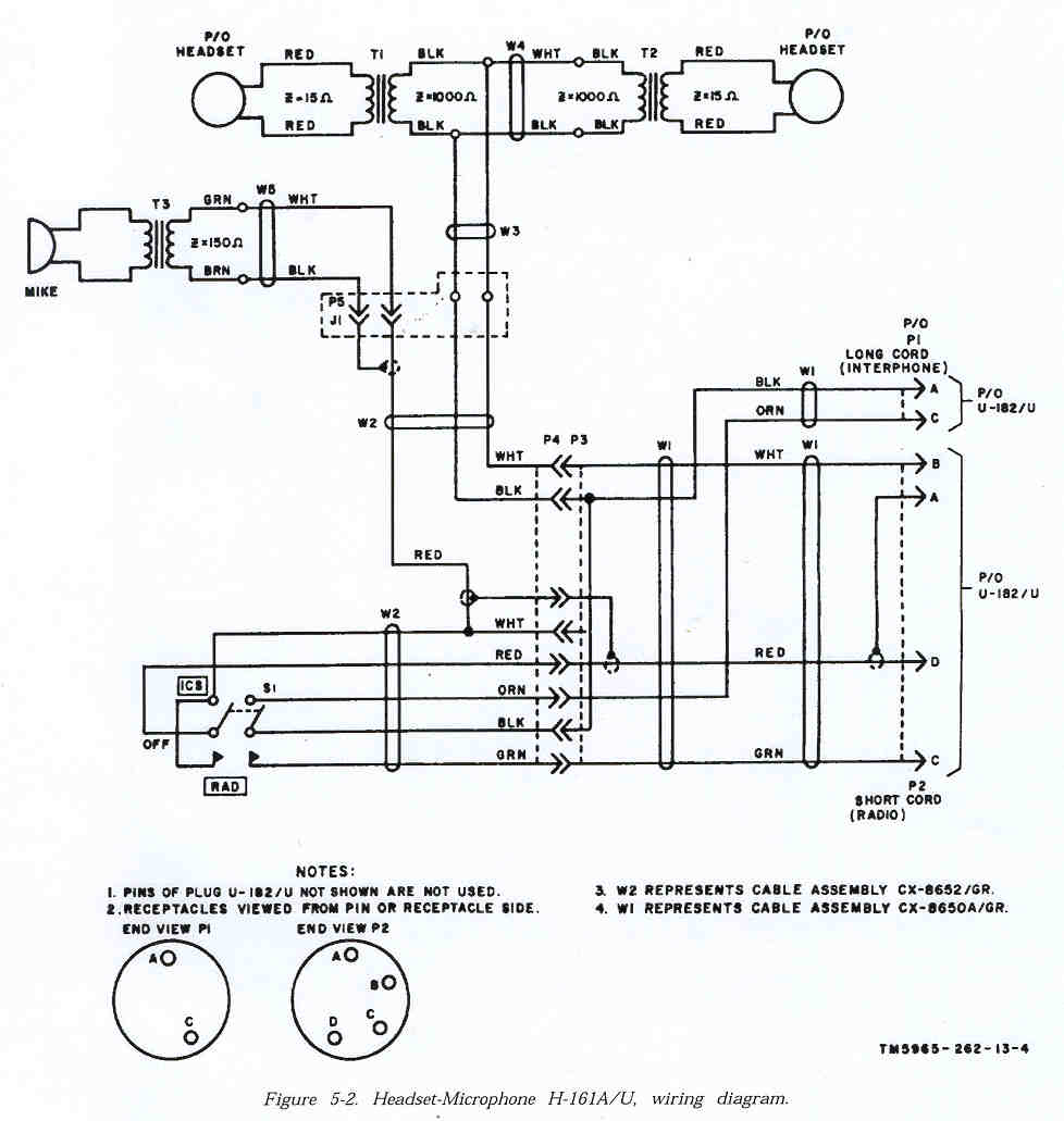 Note that the 1966 version of the TM that includes changes 1 & 2 only covers the no change and "A" versions. The headset I have is an "E" version. The manual shows different for no change headsets (only "C" PTT is on P1, so you need both connectors on a radio to use it) and the "A" version has "A, B, C and D" on P2 so just this connector will work for a radio. Don't know about all the other versions.