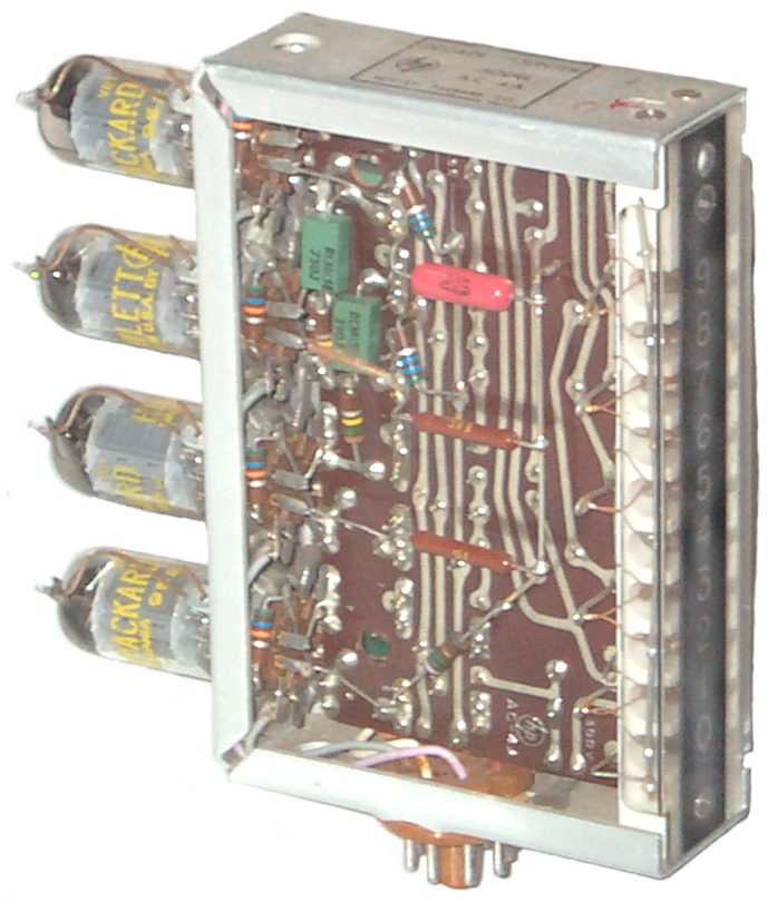 For some reason that I've now forgotten I ended up with a number of these decade counter modules and miscellaneous parts that went into them such as the string of NE-2 bulbs in the late 1950s or early 1960s. Maybe a friend of our family worked for HP, Palo Alto which is about a 10 minute drive from Mountain View.Special Version