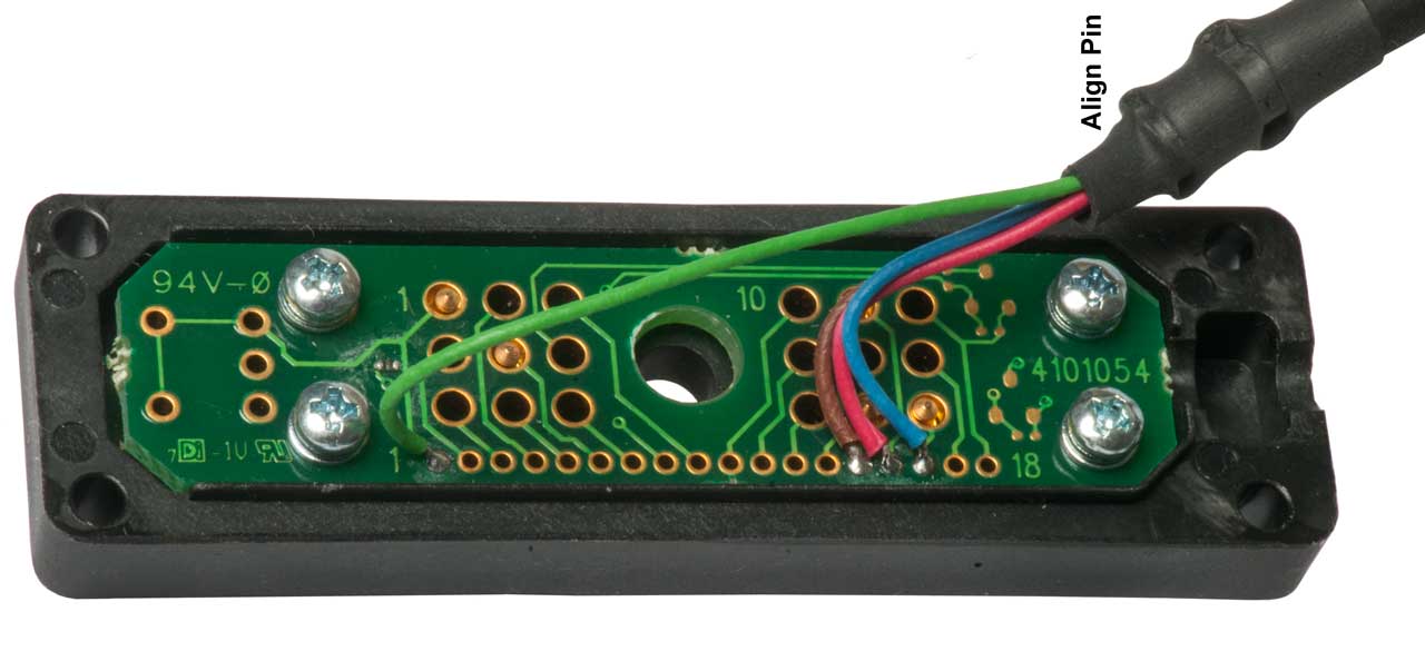 Note alignment pins and radio alignment hole.