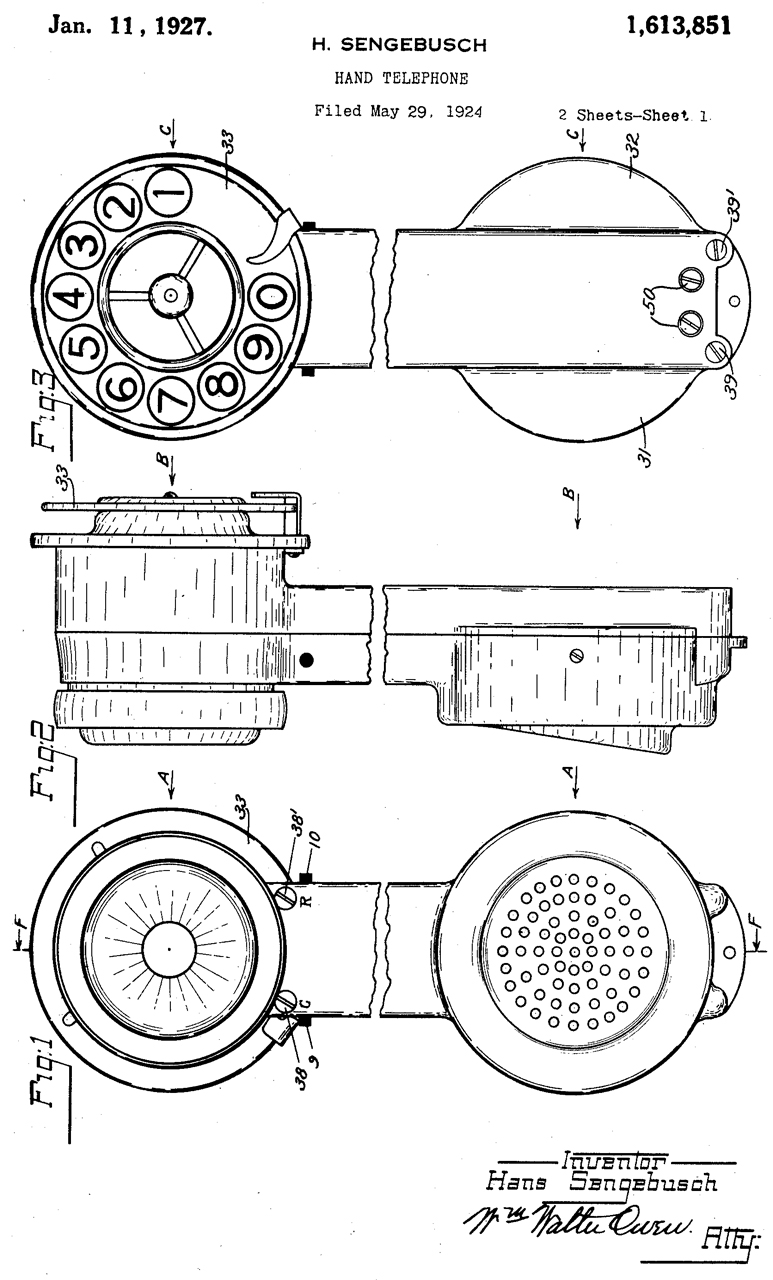1613851 Hand telephone, Sengebusch Hans, Automatic Electric, 1927-01-11, 379/370 200/1A D14/148 -