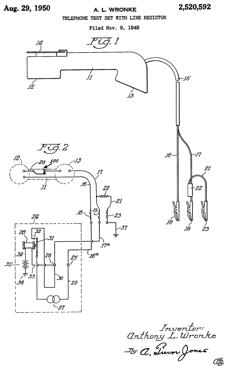 2520592 Telephone test set with line resistor, Anthony L Wronke, 1950-08-29, 379/21 -