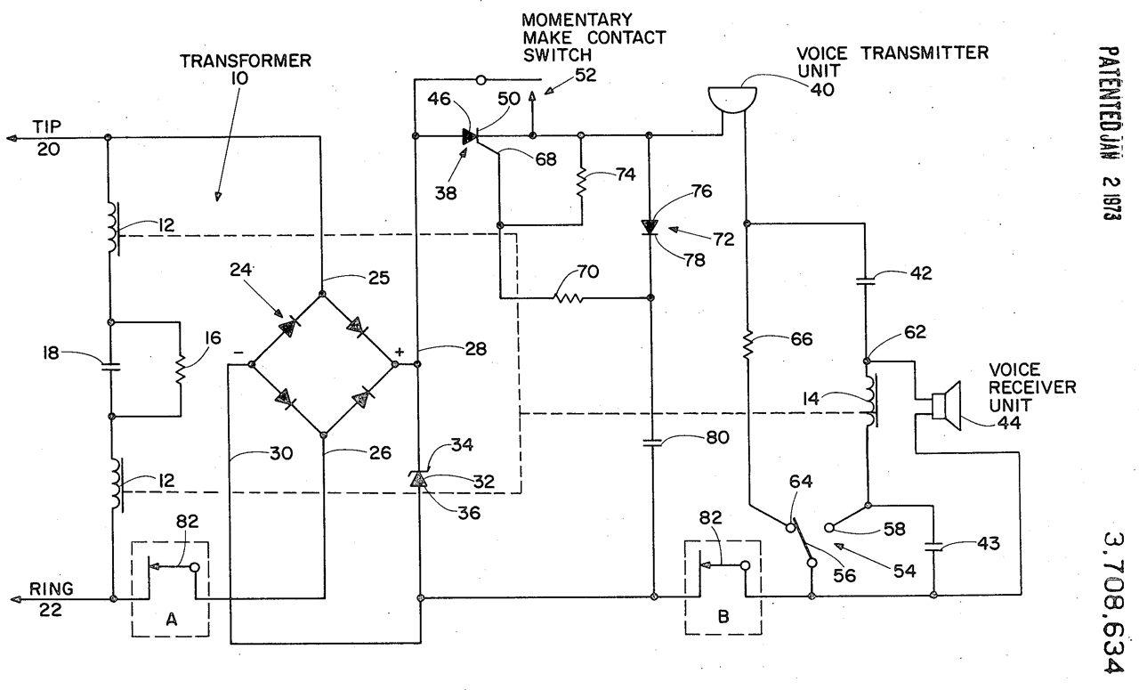 4691336 Telephone test set having an auxiliary amplifier and speaker for permitting listening to line signals, Thomas W. Durston, Harris (Fluke), 1987-09-01, - Allows (1) hearing speaker with test set clipped to belt, (2) can listen to DATU (Wiki) messages, (3) in monitor mode no disturbance to line. Replaces an add on amplifier used on the TS-21.