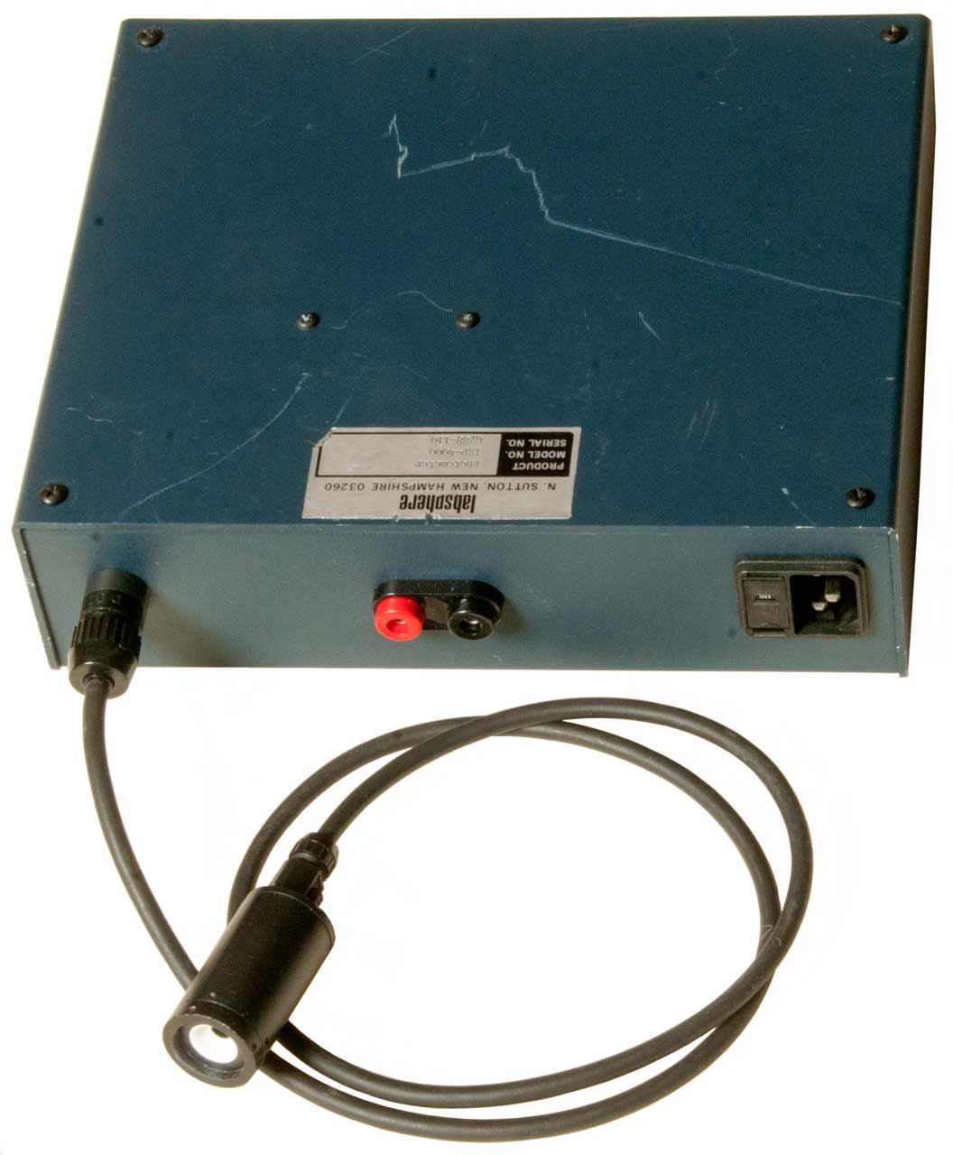 Needs two each 9V batteries. It's not at all clear what type of sensor is used. The sensor is pretty much a plastic cup that's mostly empty. There's a front black plastic cap with a small hole. Removing the cap greatly increases the sensitivity. Maybe should be called a Radiometer (Wiki) since light units are not being used.