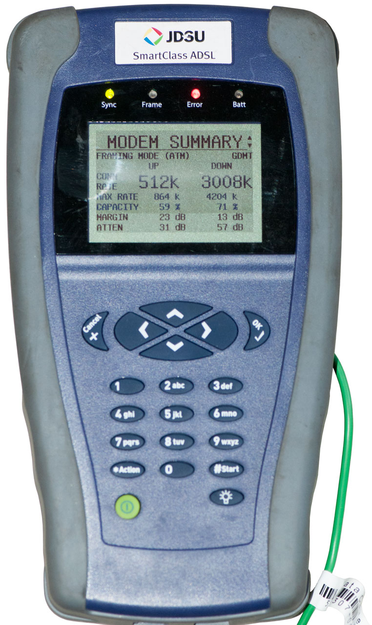 After having extreme problems with my at&t DSL and having the Harris T1000 ADSL tester fail, I got this JDSU tester as well as the Acterna DSL Services Tester 350 in order to test the DSL.