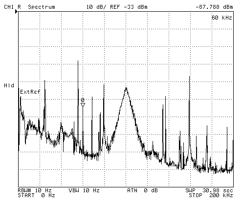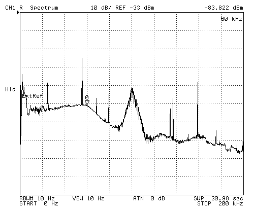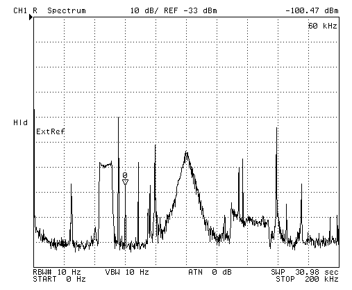 After the modification WWVB is 20 to 50 dB above the noise floor(GIF) depending on the time of day, but there is still room for improvement in the noise floor.May 2002 - replacing the two 100 uH chokes with 1 mH chokes cut the frequency where the noise floor rises about in half.