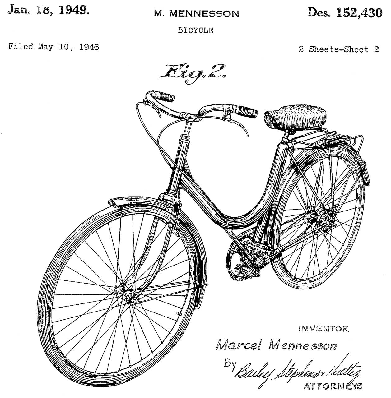 D152430 Bicycle, Marcel Mennesson, 1949-01-18, - Ladies style, large tube frame, luggage rack.
