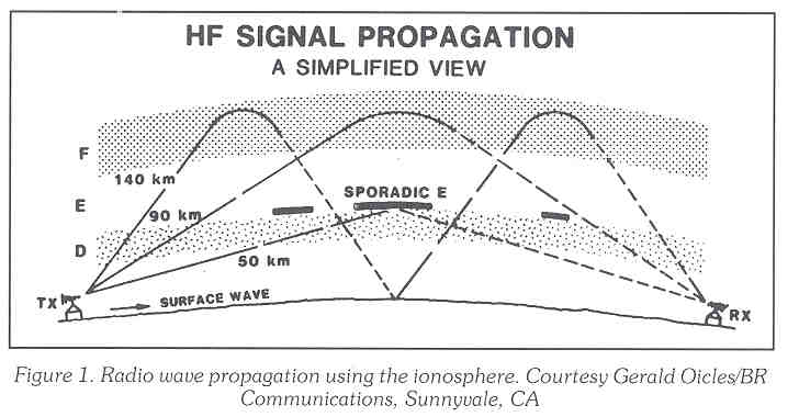 The answer is a device called an ionosonde. Military and scientific users of the short-wave band use them regularly to establish radio links and to probe ionospheric conditions. I'll describe what ionosondes are and how you can listen for them, but first let me digress for a brief review of the ionosphere and its role in radio propagation.