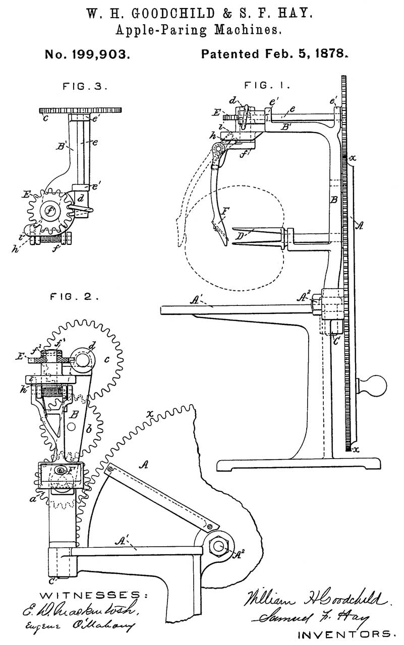 199903 Apple-Paring Machines, W.H. Goodchild & S.F. Hay, Feb 5, 1878, 99/592 99/599 -