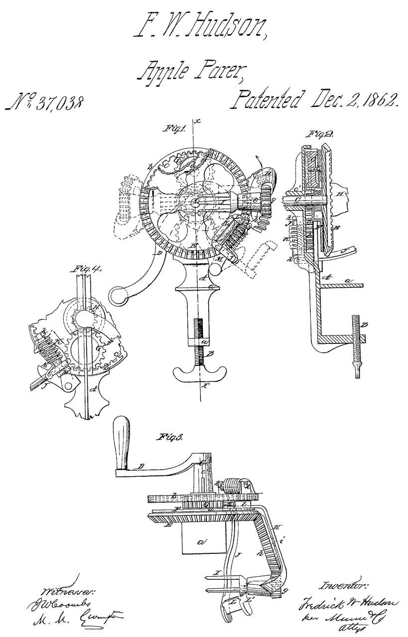 37038 Apple Parer, F. W. Hudson, Dec 2, 1862, 99/595; 99/599 -